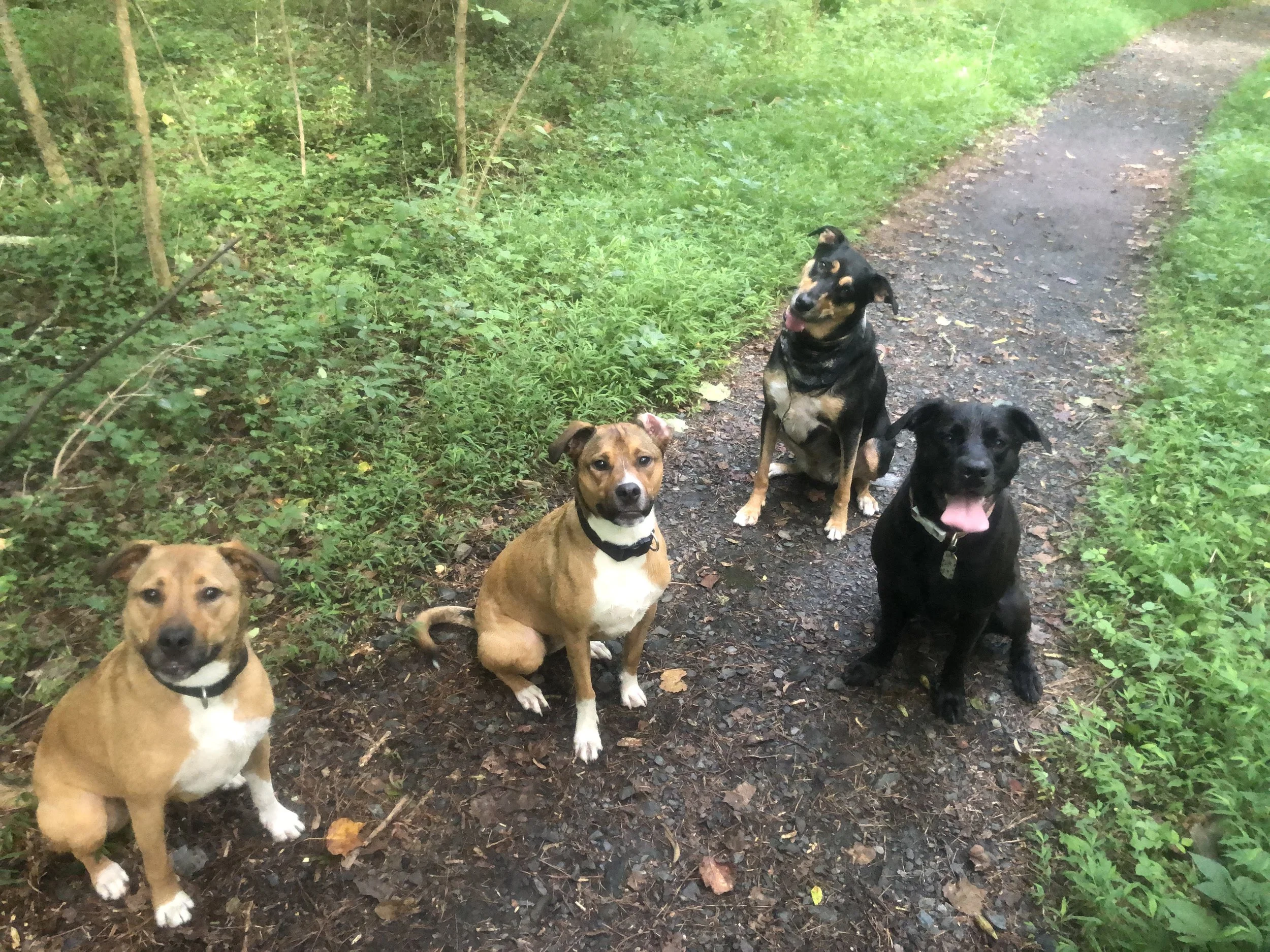 Training sessions are thoughtfully spaced throughout each day and integrated into real-life moments—mealtimes, walks, car rides, trails, restaurants, baths, nail trims, even teaching dogs to have downtime and relax—skills that are practical and lasting. There are no noisy kennels or rotating handlers. You will receive training update videos during my stay, homework assignments for when you return, and ongoing support. All clients who have completed a board and train option receive 15% off all other services.
